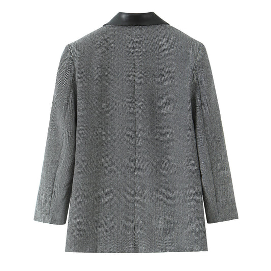 Double breasted patchwork double breasted long sleeved suit jacket for women